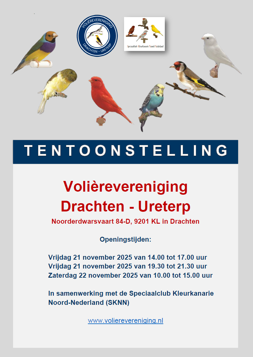 - Inbrengen vogels is op woensdag 19-11-2025 tussen 16.00 – 21.00 uur.
